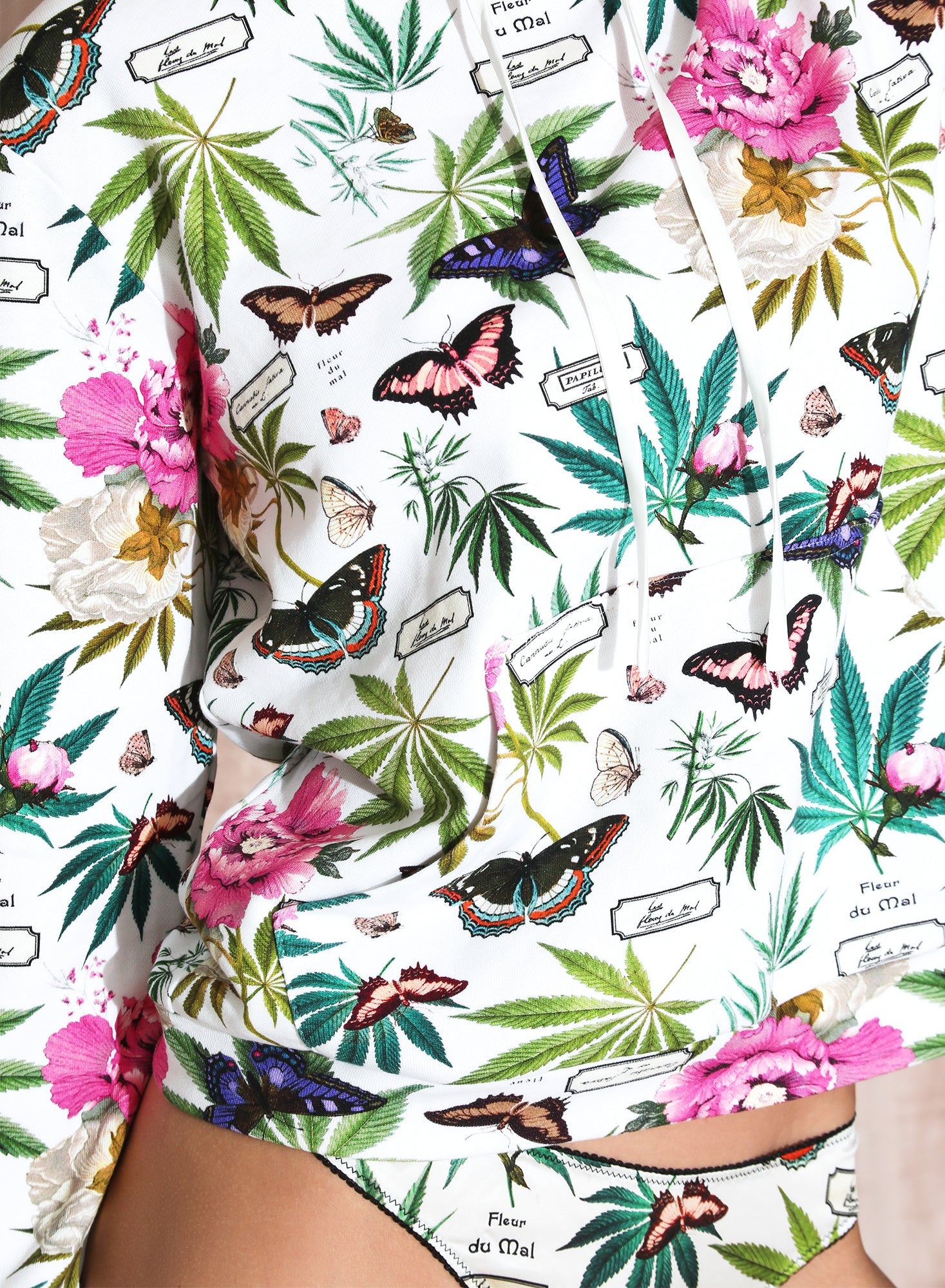 This slightly oversized hoodie features a unique botanical print and a relaxed fit, offering a laid-back yet stylish silhouette. It has practical drawstrings at the neck and a front pocket for added ease.