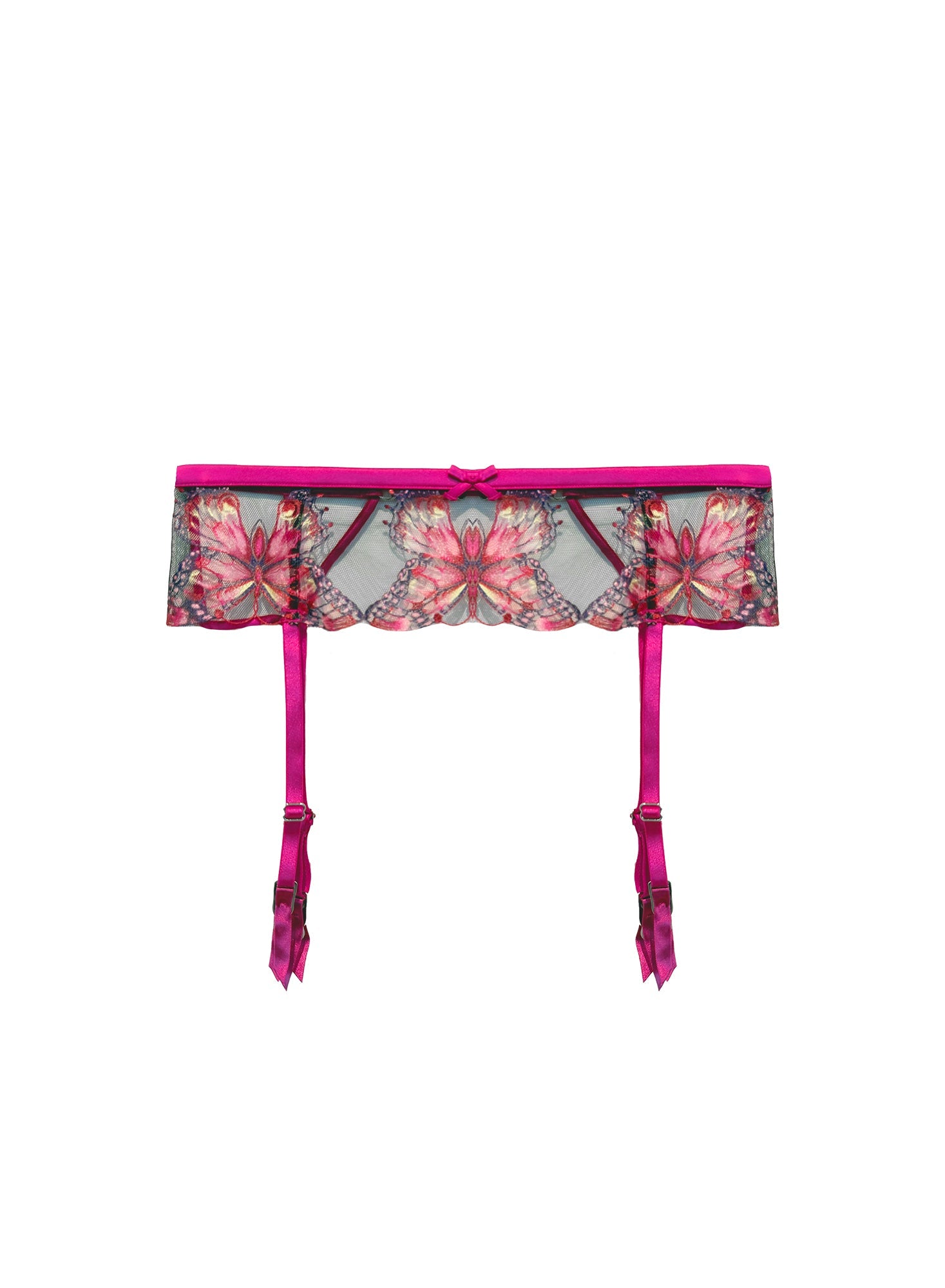 Features custom butterfly embroidery with luxe silk trim and adjustable straps for a personalized fit that moves with you.