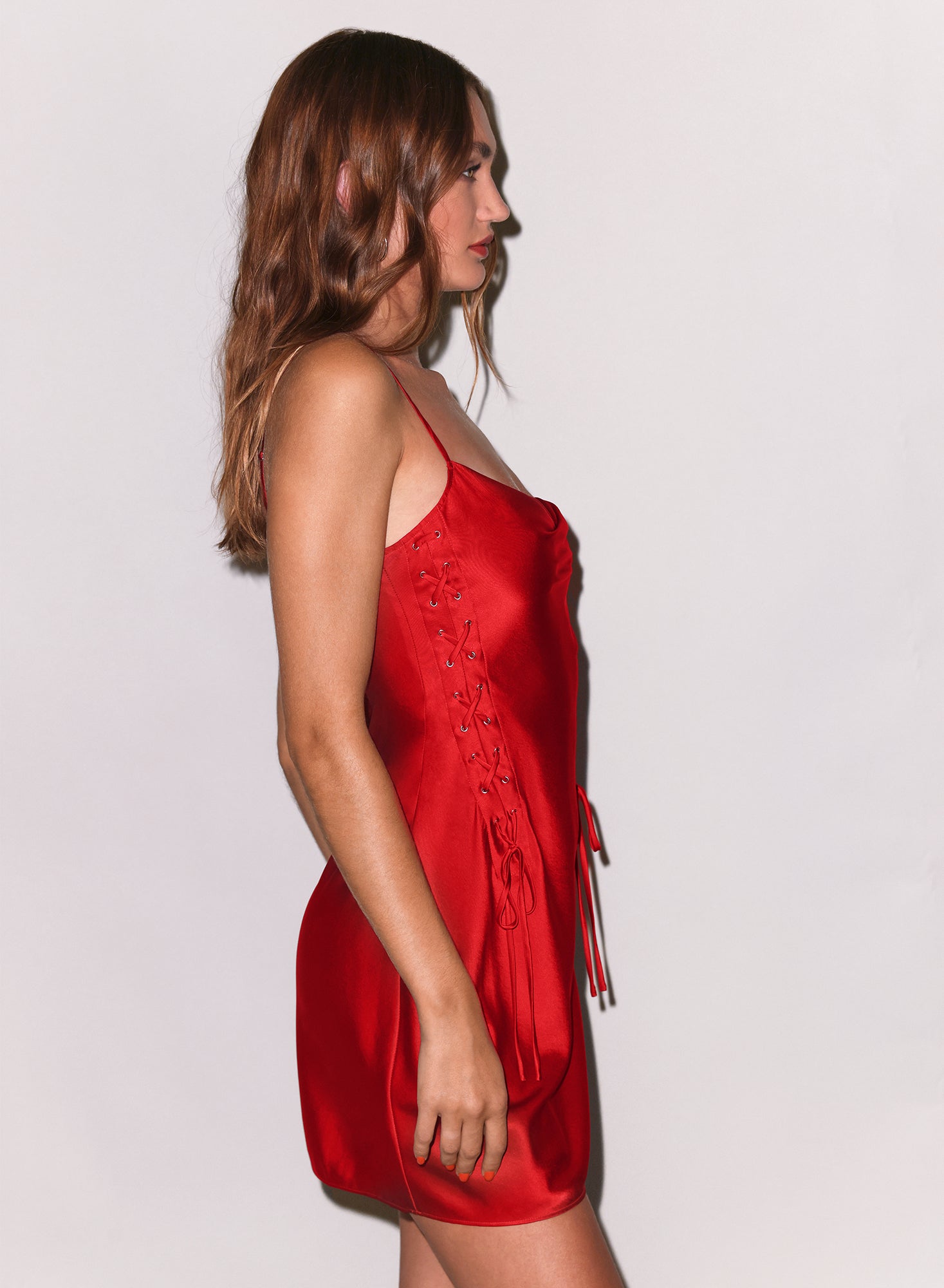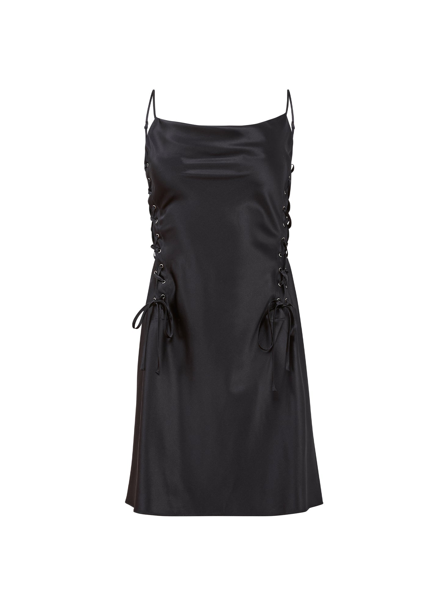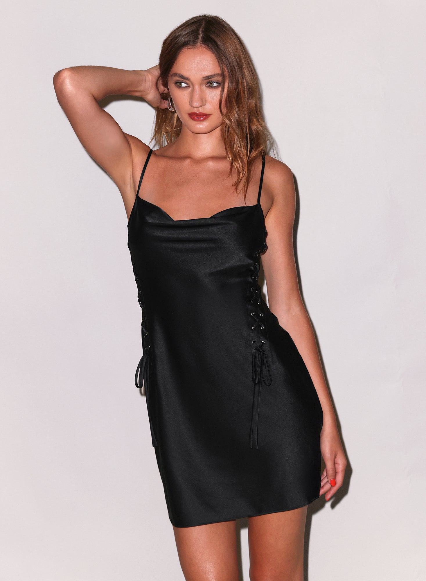 Crafted from stretch silk charmeuse with a graceful cowl neckline and adjustable straps, this dress drapes beautifully. The adjustable lace-up detail at the side adds a touch of allure, while the invisible back zipper ensures a smooth silhouette. Layer it over seamless essentials for a flawless look.