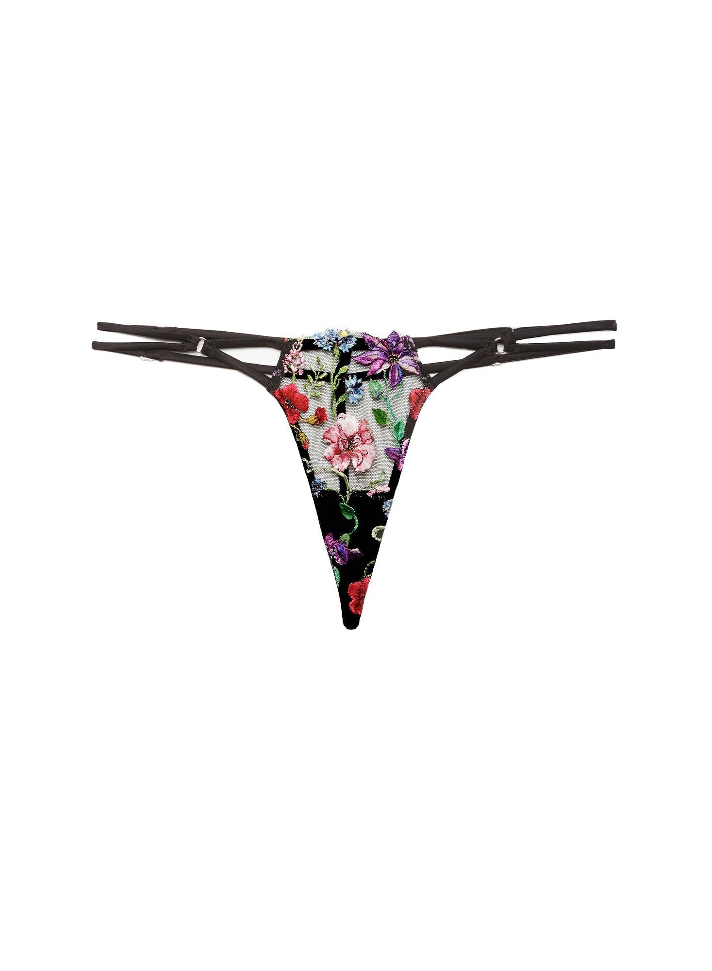 Featuring adjustable silk side straps and a strappy back for a customizable, comfortable fit that moves with you. The soft scalloped front and custom floral embroidery add a touch of romantic detail.
