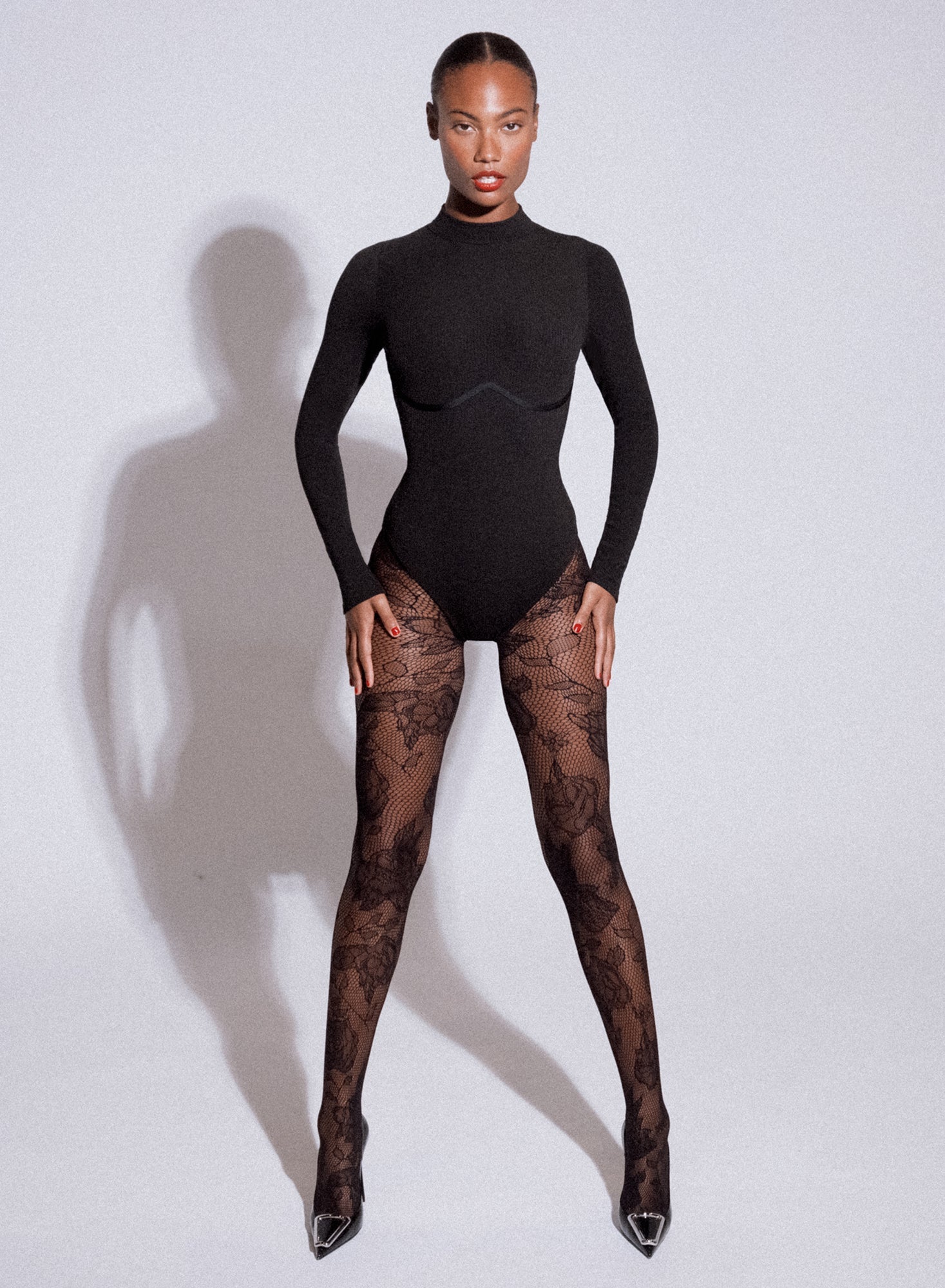 Our bodysuit features a lingerie-inspired underbust detail and ultra-flattering compression waist to shape and cinch, creating a defined hourglass figure. It has a thong cut back and a convenient bottom snap closure. Pair it with tailored shorts and sheer tights for a complete, polished look.