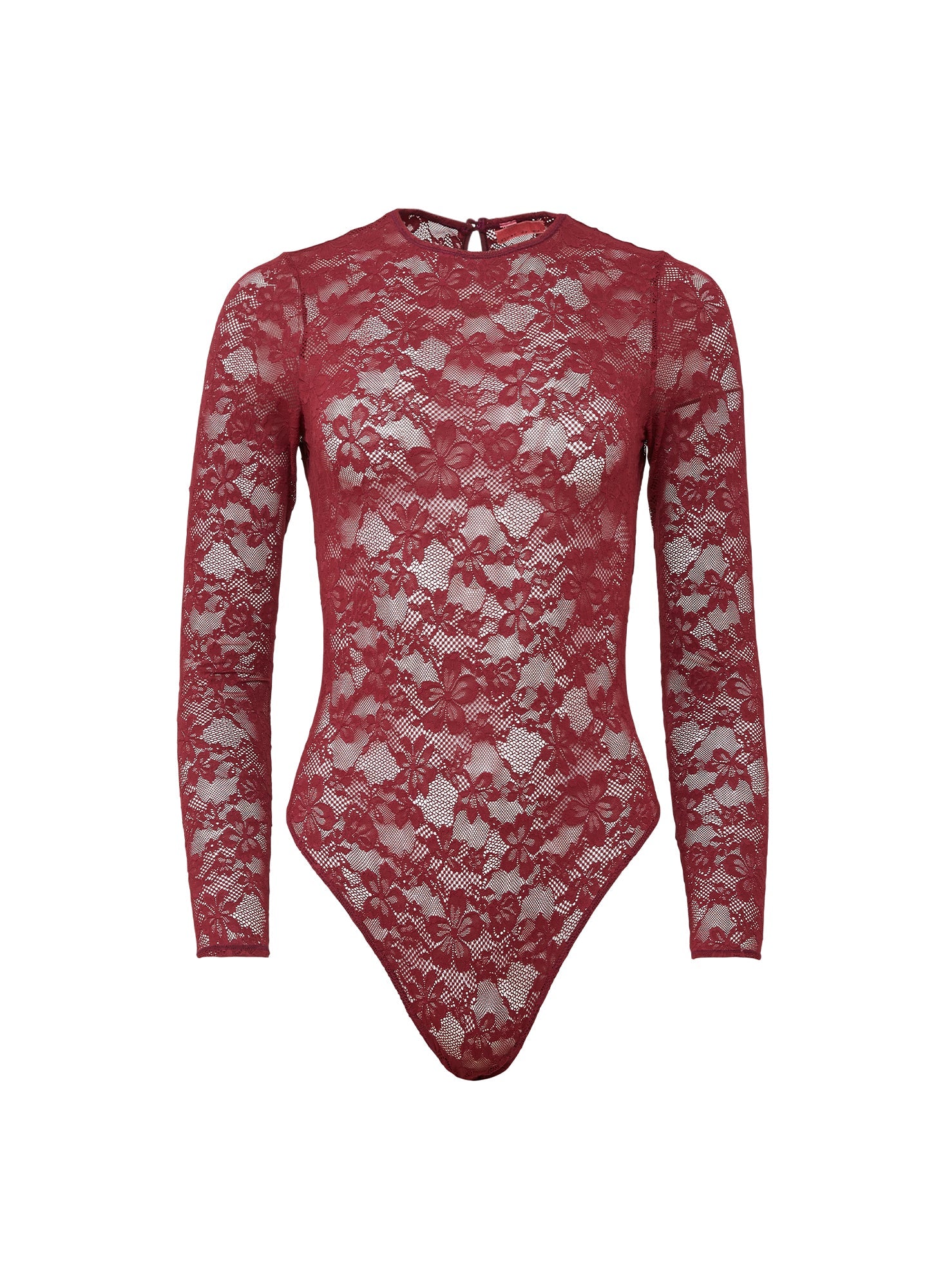 Crafted from ultra-comfortable four-way stretch lace for a smooth, seamless finish that moves with you, featuring a flattering thong cut, long sleeves, and a delicate back keyhole detail for subtle allure.