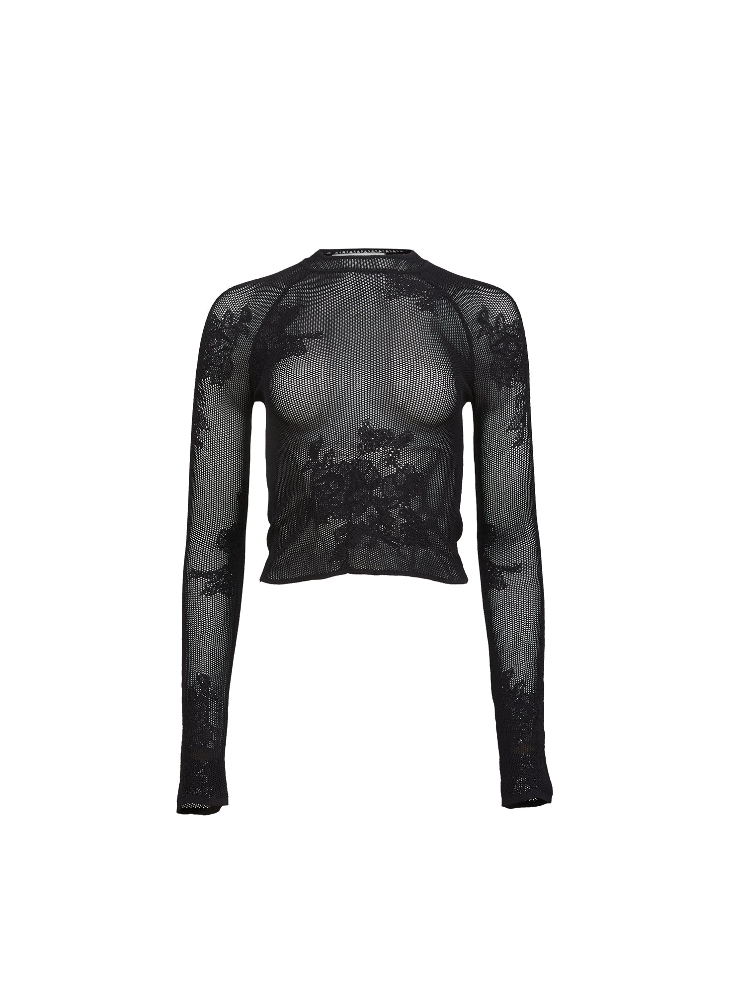 This top features a soft stretch knit with beautiful pointelle lace detailing, a flattering mock neck, and raglan long sleeves for a comfortable, feminine silhouette. Pair it with a triangle bra and a matching maxi skirt for a complete, enchanting look.