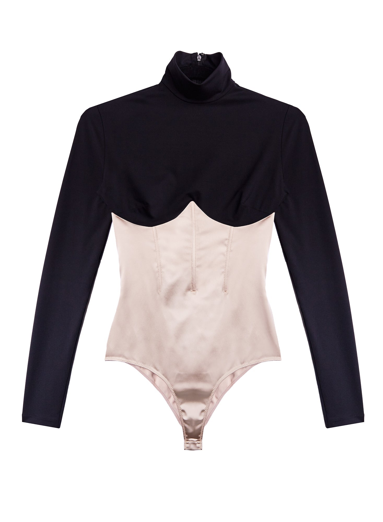 Soft stretch jersey hugs your torso, while the satin bottom with princess seams and boning provides elegant structure and shape. The thong cut ensures a seamless look under skirts or trousers.