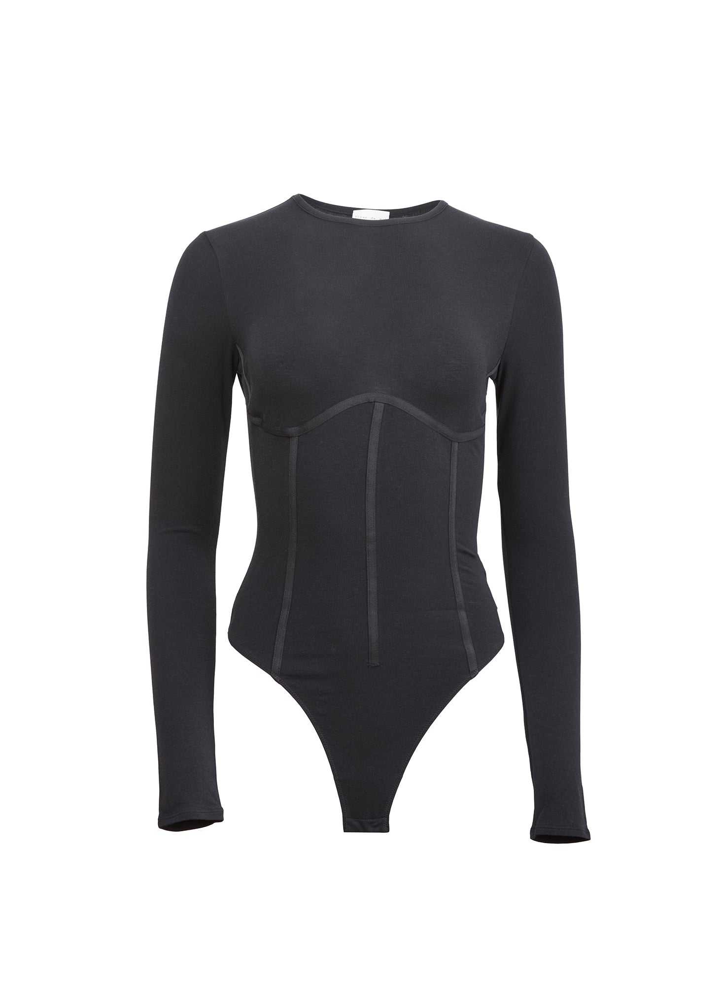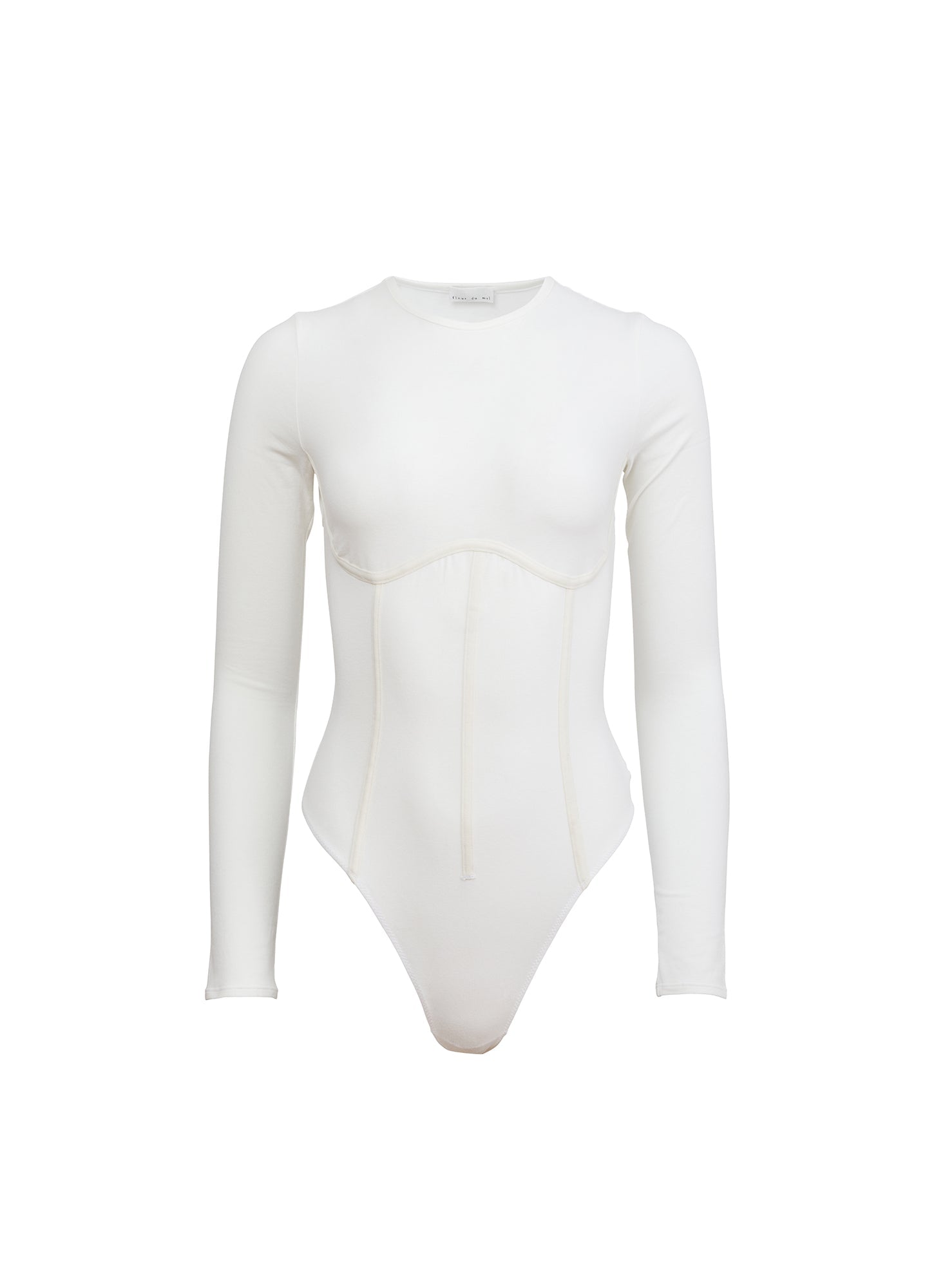 This bodysuit features a soft, lightweight organic cotton fabric with princess seams that gently shape and flatter your figure, offering a comfortable fit for all-day wear. The long sleeves and bottom snap closure add to its easy, versatile style.