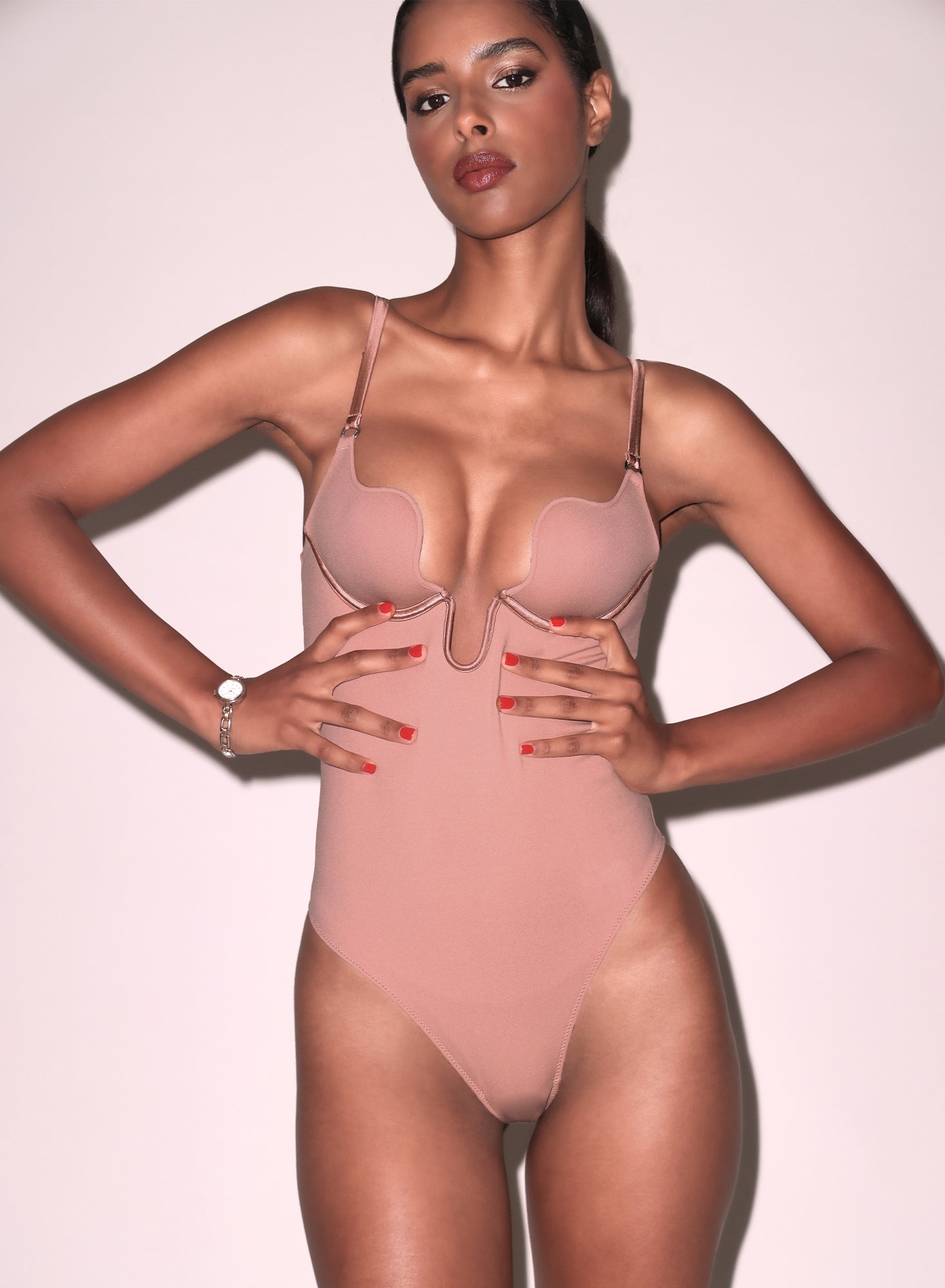 Go effortlessly chic by pairing with your boyfriend jeans, or layer it under that dress that's just a little too sheer to completely bare it. The body is a blend of nylon and elastane with silk straps and a cotton gusset for comfort. For care, dry clean or hand wash cold and hang to dry.