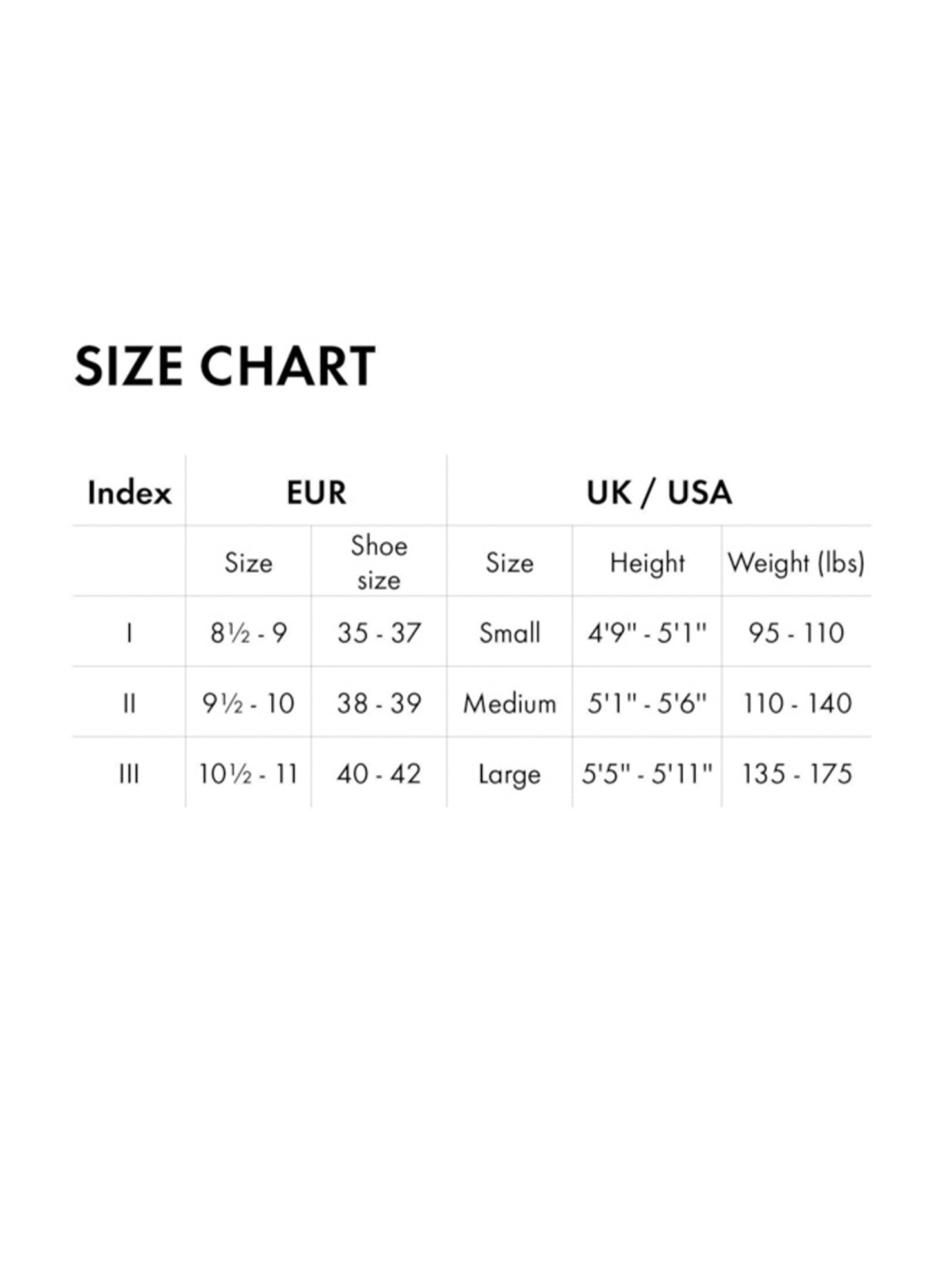 | 2 (S) | 2-4 | 26-27.5" | 36.5-37.5" |