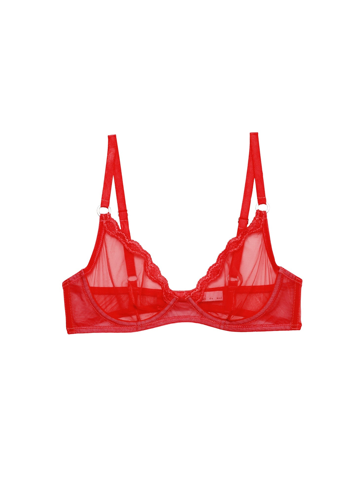 Sheer demi bra with stretch Italian tulle cups, playful lace trim and adjustable straps with o-ring detail offer support and subtle sexiness, making it an essential underpinning. Pair with the matching Sheer Tulle Thong for a complete look.