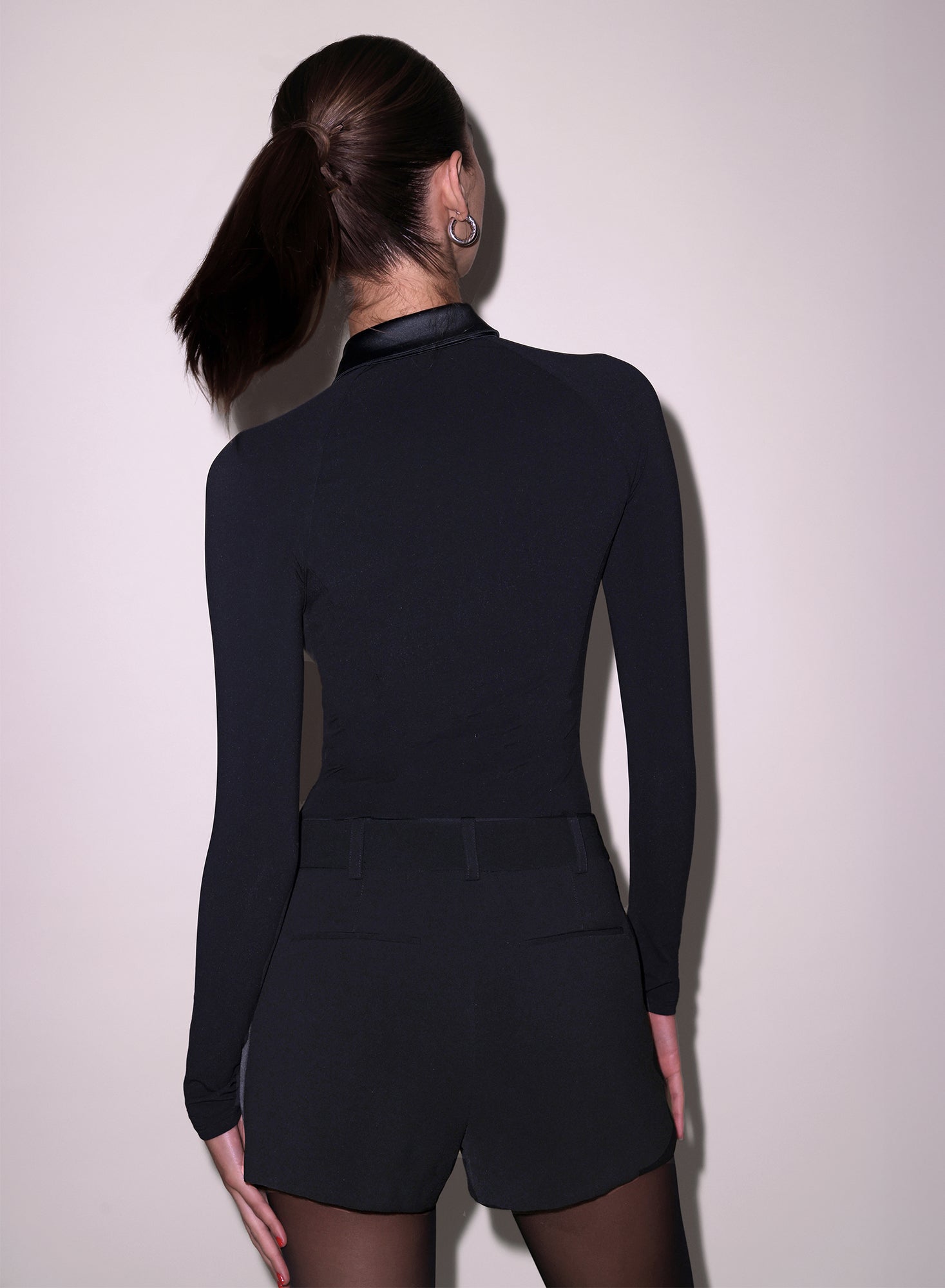 Our tailored shorts feature a classic mid-rise fit and are detailed with a sleek silk satin tuxedo stripe. Pair them with a delicate bodysuit and sheer tights for a complete, head-turning look.