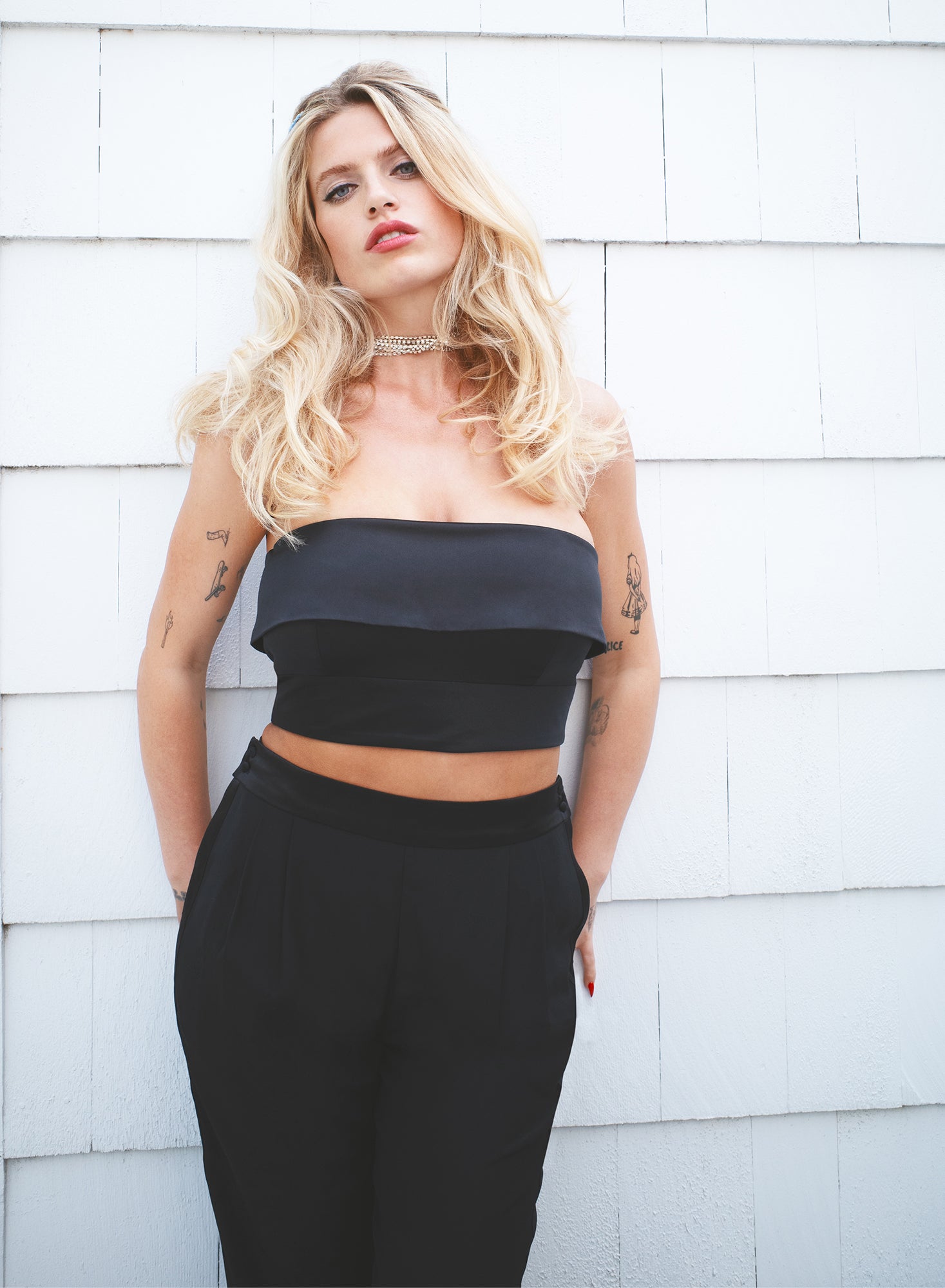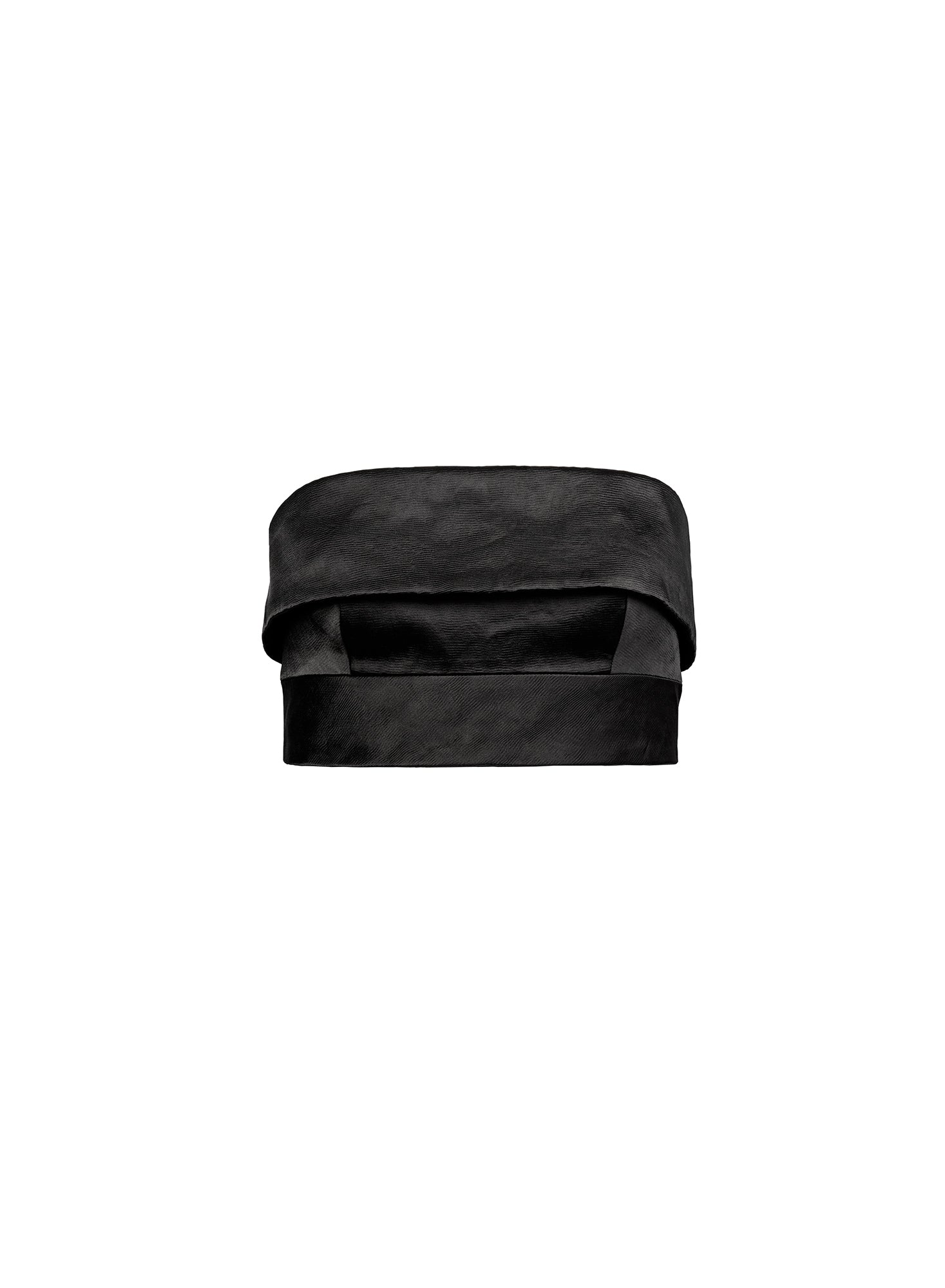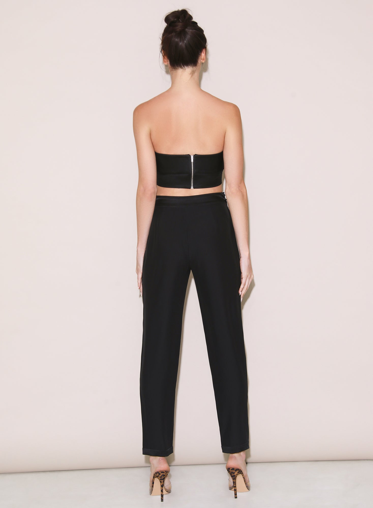 Crafted from luxe silk charmeuse with a structured silhouette and a sophisticated fold-over neckline, this top offers a timeless elegance. A back zipper ensures a smooth and secure fit. For a complete chic nighttime ensemble, pair it with tailored tuxedo pants.