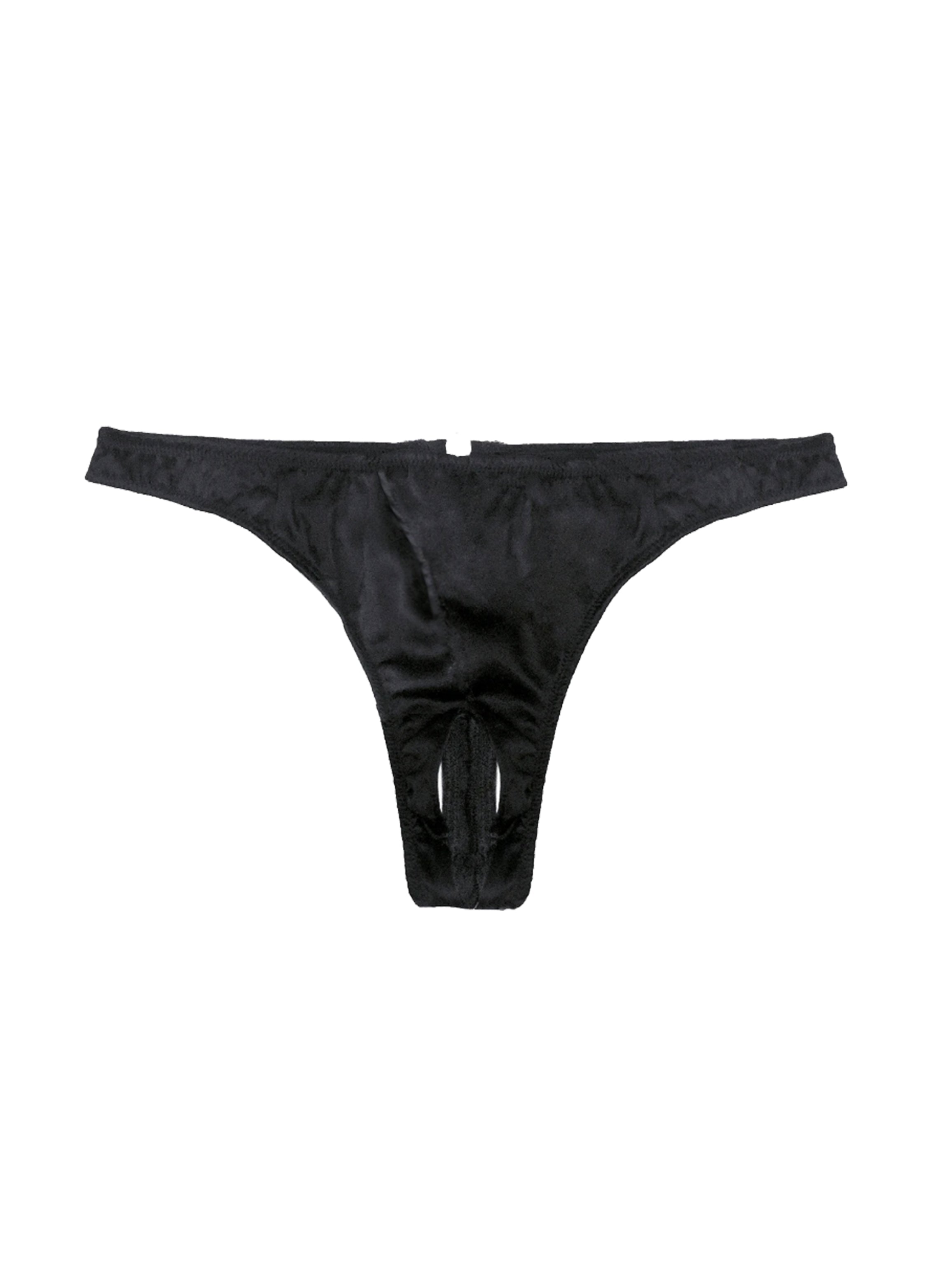 Seriously sexy with an o-ring cutout panel at the back, featuring top stitch and front bow detailing. Complete the set with the matching ouvert bra.
