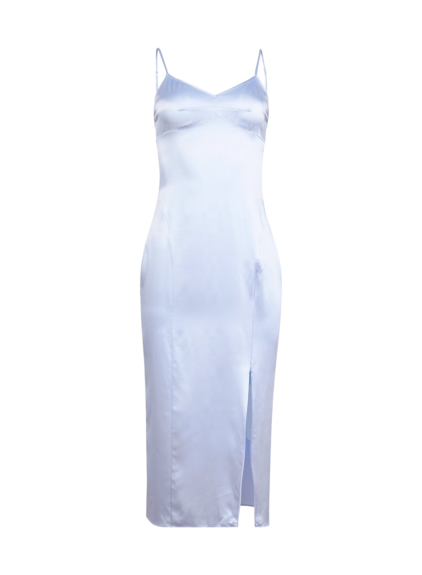 Cut from luxe bias cut silk charmeuse with a zipper opening to show as little or as much as you want. Features a v-neckline with dart detailing and adjustable straps for a personalized fit.