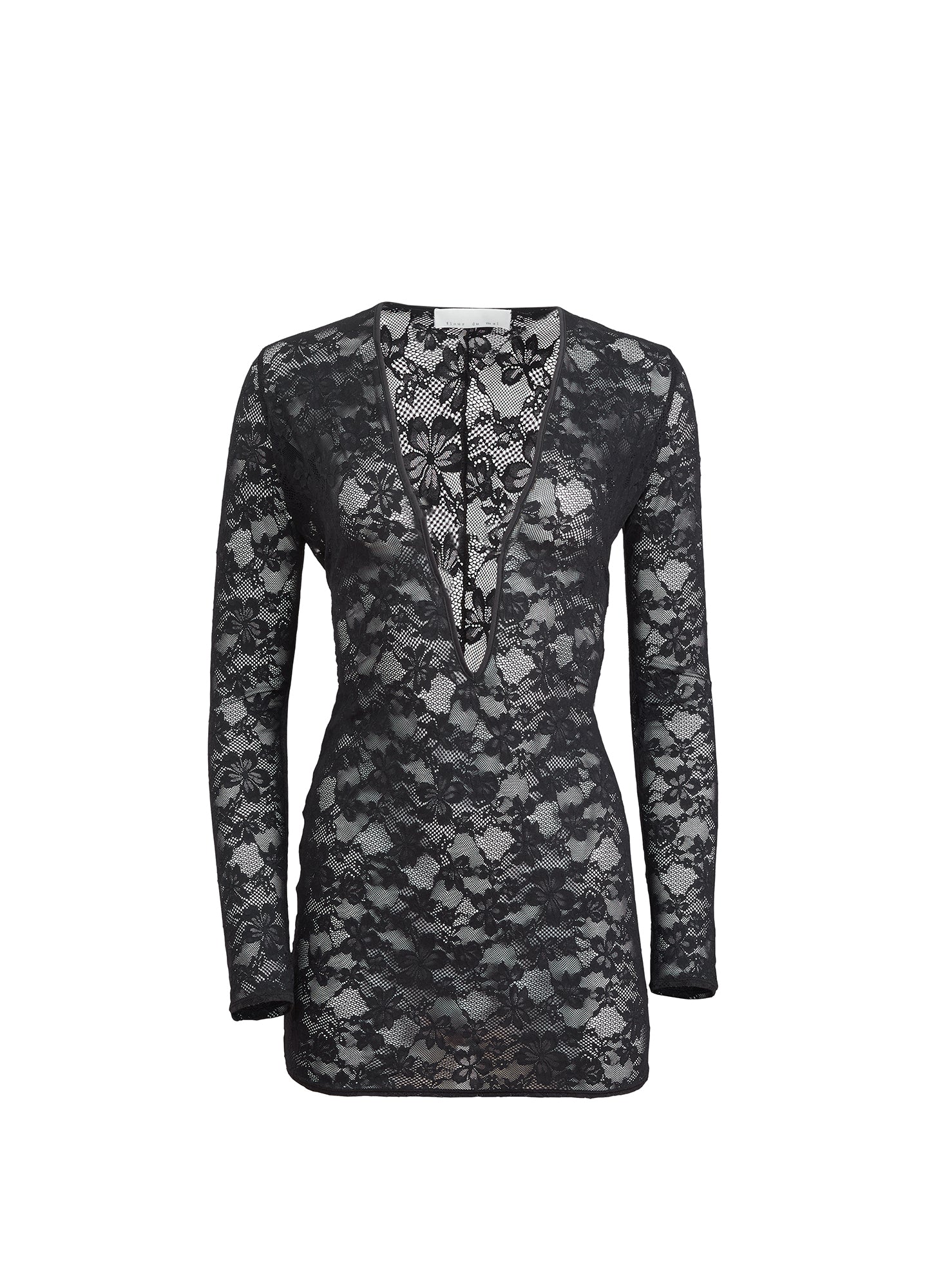 This ultra-comfortable stretch lace dress features a deep V-neckline and a fitted, unlined silhouette that moves with you. Layer it over matching cheeky bottoms for a seamless look or wear it alone for a daring, minimalist vibe.