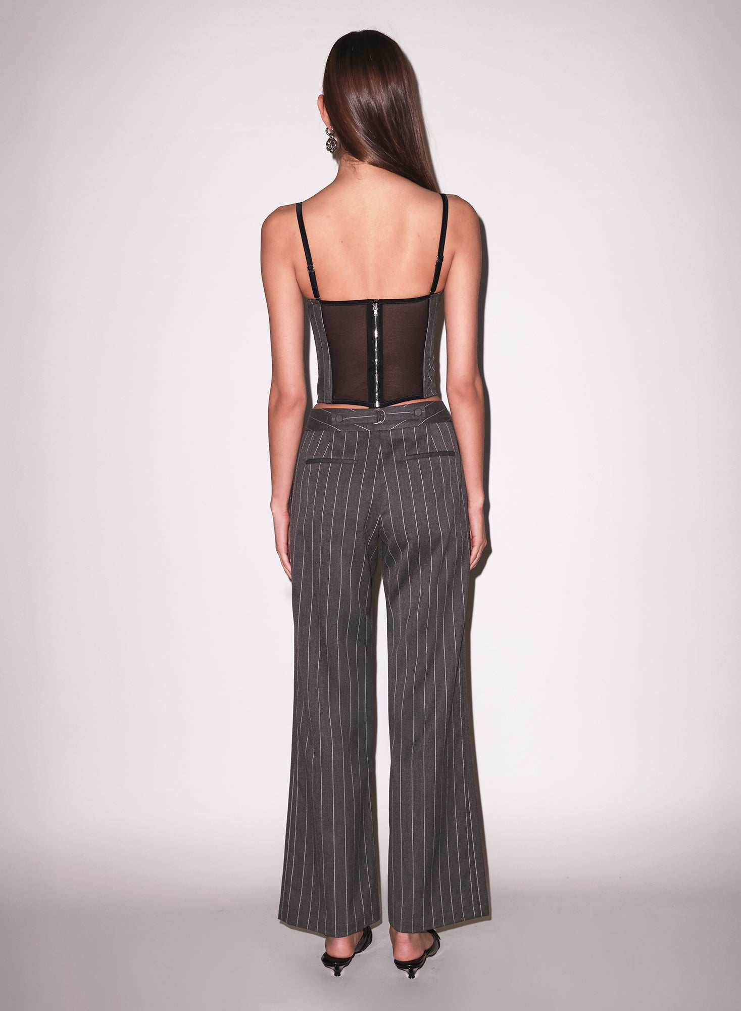 Functional meets cool with our tailored trouser featuring snap buttons to show as little or as much leg as you want. The curtained waistband with front zip closure offers a sleek silhouette, and the lining ensures comfort. Suit up with a matching bodysuit for a complete, powerful look.